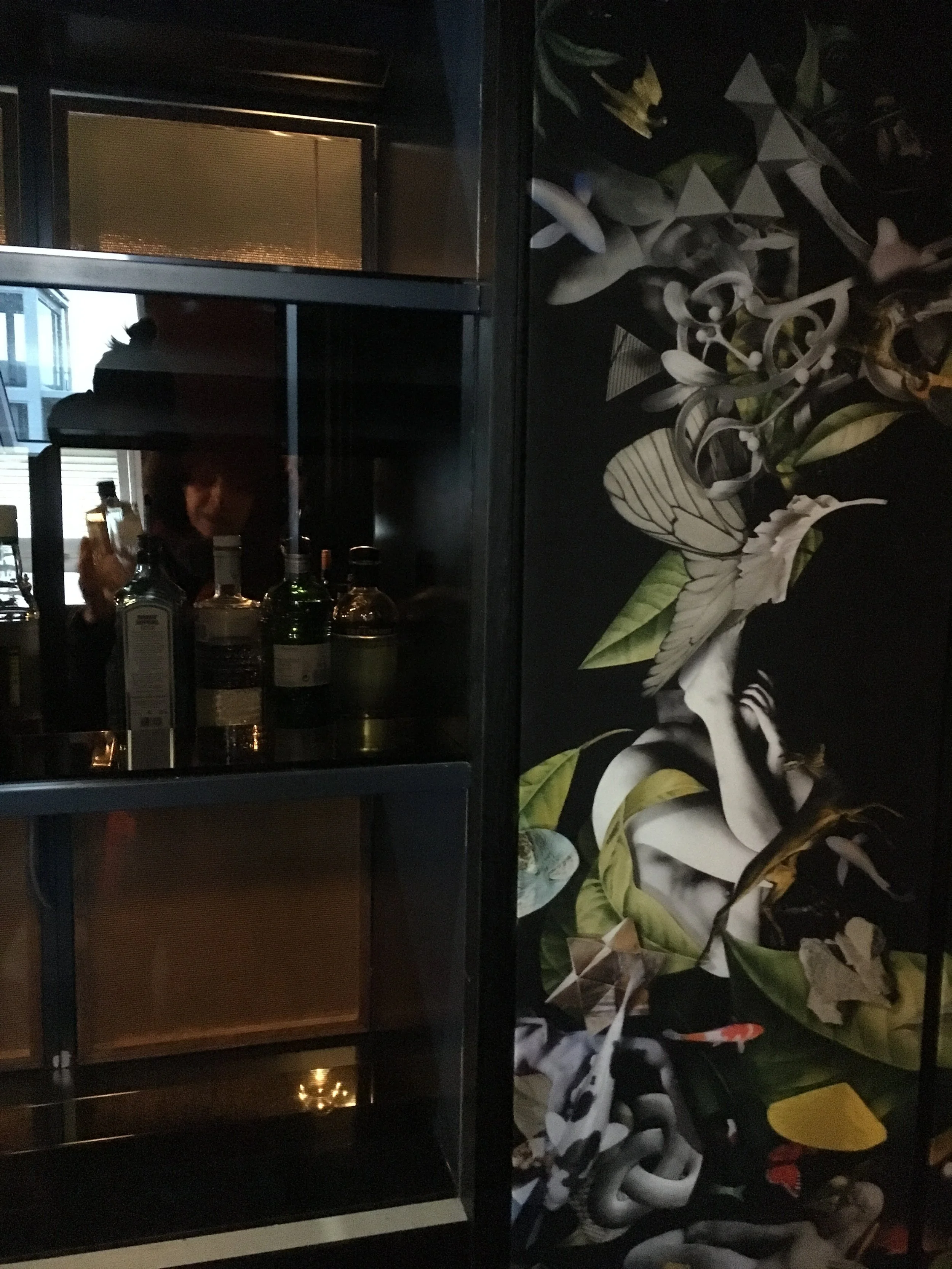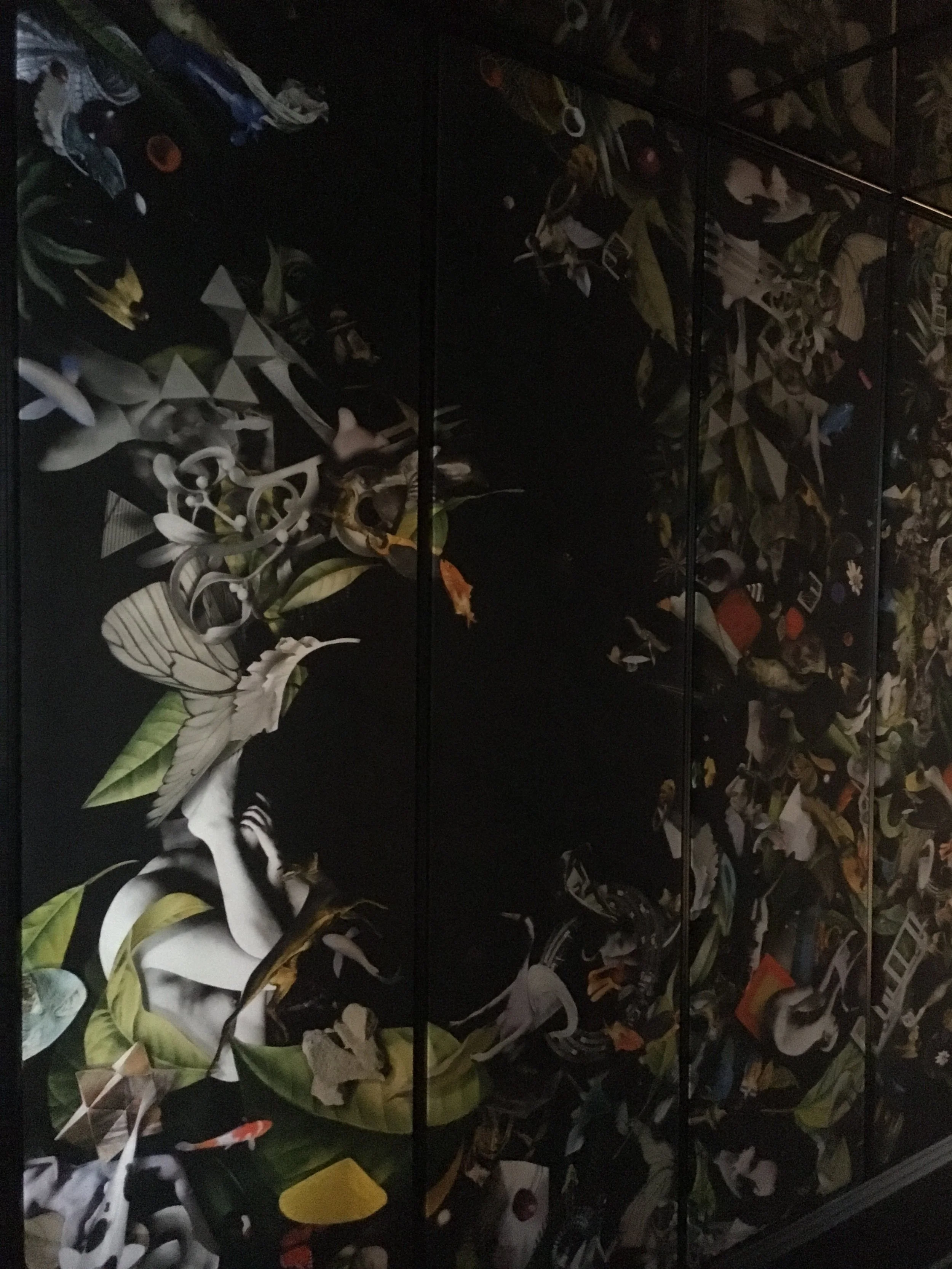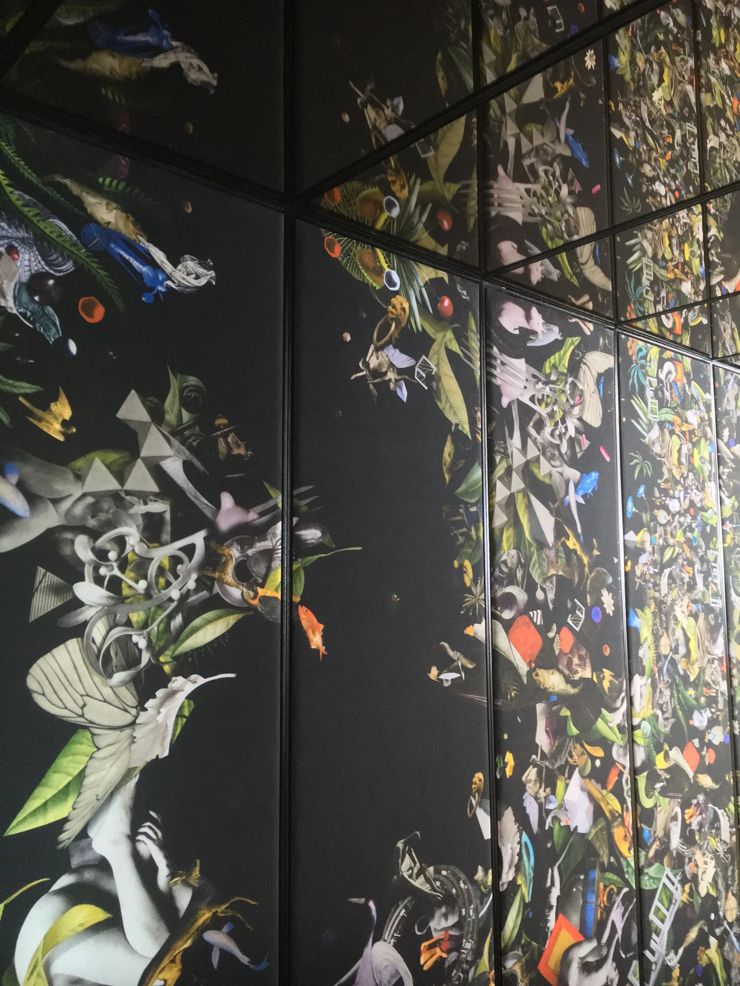 digital collage print on eco bamboo fabric, upholstered & mounted on wood frame