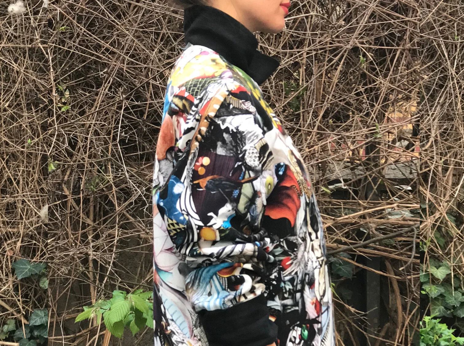 fabric: eco bamboo, 100% deadstock wool, organic print