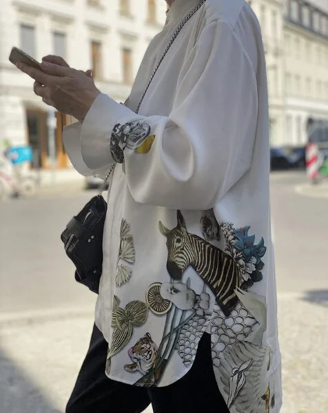 We create individual tailor-made unisex works of art & commissioned work for unique requests (fashion / interior). Hand-embroidered details on request. Green textile. GOTS certified fabrics and print.